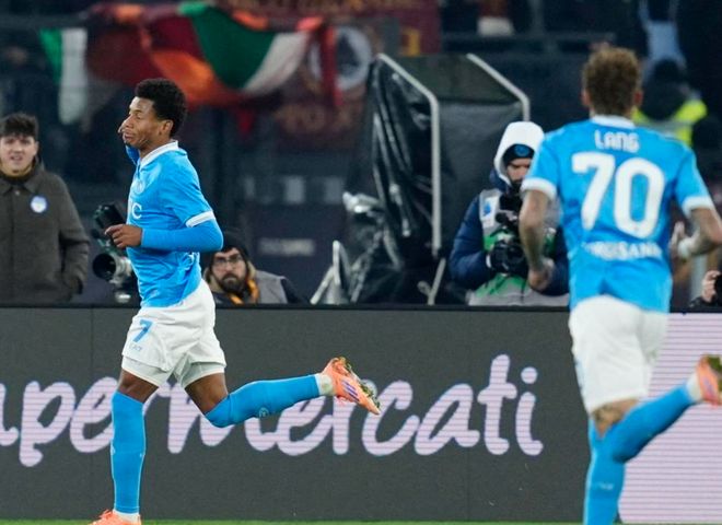 比賽第10分鐘,諾阿-朗獲得單刀機會。門將沖出禁區(qū),化解險情。這次出擊非常關鍵。8分鐘后,迪洛倫佐在禁區(qū)右側凌空抽射,打近角,稍稍偏了一點。第24分鐘,諾阿-朗在禁區(qū)左側小角度射門,門將把球撲了出去。第36分鐘,羅馬丟球了。依靠一次反擊機會,內(nèi)雷斯獲得單刀機會,他突入禁區(qū),推射破門!羅馬轟然倒下!半場結束,羅馬0-1落后。